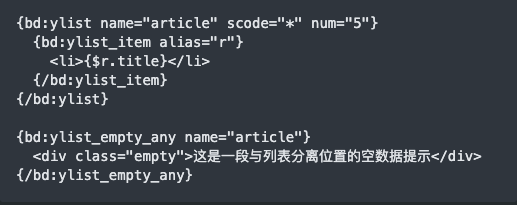 {bd:list}与{bd:ylist}的差异:ylist是本模块扩展,具备缓存和更灵活的空标签支持。